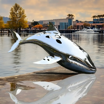 Capture the dynamic moment of a mighty whale breaching the water's surface with our exquisite stainless steel sculpture. Designed to be placed at the edge of a pool or fountain, it creates a breathtaking illusion of the whale diving into its aquatic realm. This piece is perfect for adding a touch of contemporary elegance and artistic conversation to any space.
