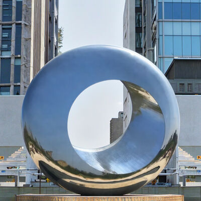 This giant mirror polished stainless steel ring sculpture stands as a striking centerpiece of urban public space. Blending sleek modern landscape aesthetics with high-shine stainless steel material, its reflective surface captures and reimagines the surrounding cityspace-turning passeerby, geenery, and architecture into a dynamic, ever-changing visual dialogue. As a signature city art installation, it merges functional public decor with contemporary art, offering an immersive interactive experience while elevating the modern vibe of any urban enviroment.